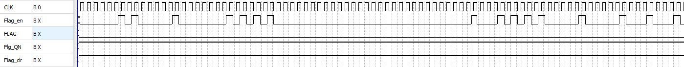 The simulation result shows FLAG low all the time inspite of positive edges of CLK during Flag_en pulses.