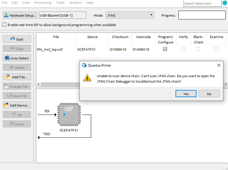 I tried using Quartus Prime and followed the 'Configuring the FPGA Using the Quartus II Programmer' section in the UG_CVE_FPGA_DEV_KIT document to program the C5E_DEV_KIT_B using JTAG. However, when ...