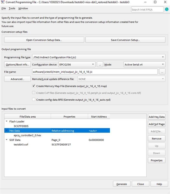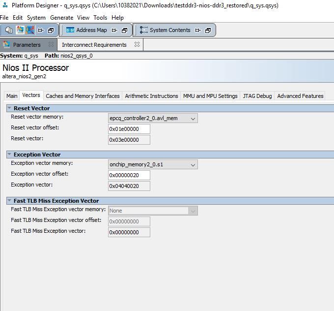 Hi Team, We tried to check the jic file programming setup in Cyclone v gt eval board. For that we have created the system in FPGA design like this: nios ii reset and exception vector param...