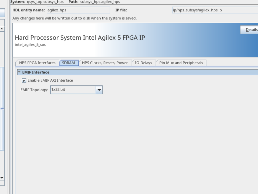 You could enable this under the SDRAM tab of the Agilex5 HPS IP.