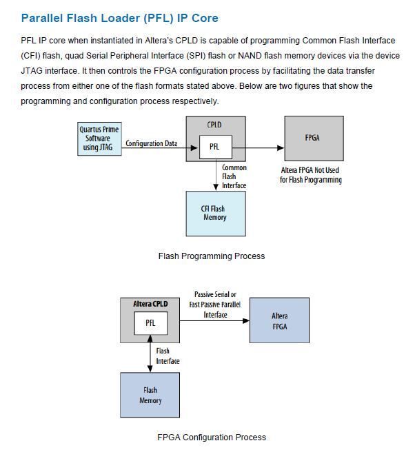 Basically, 2*CFI_1gb flash device is used to configure the FPGA in passive serial (PS) or fast passive parallel (FPP) scheme.