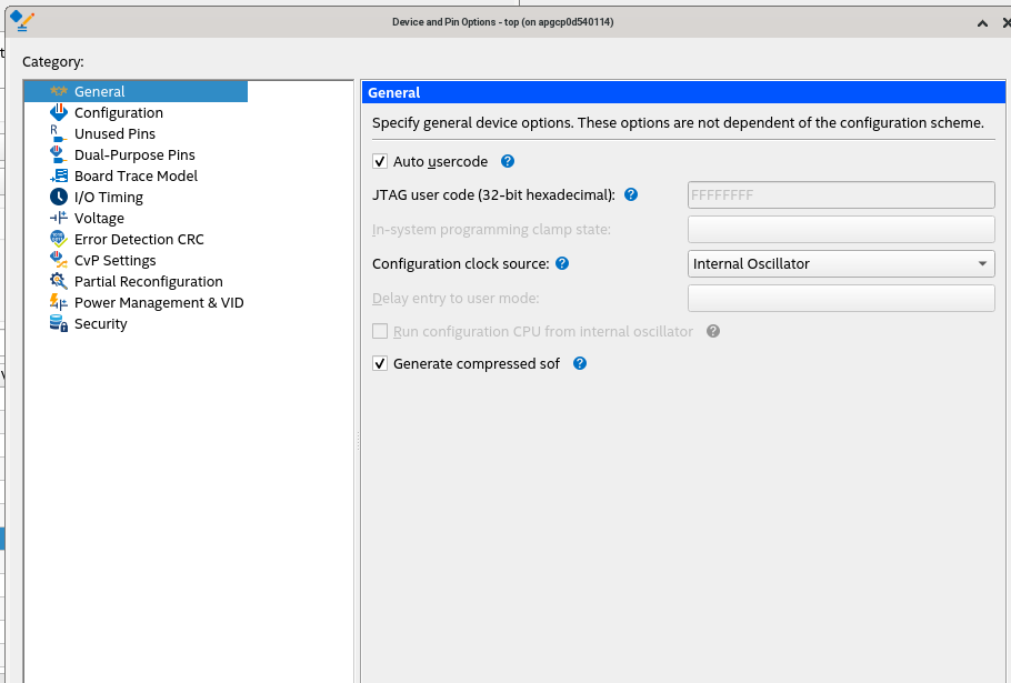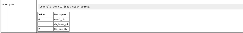 I tried by choosing the Internal oscillator in a general configuration in Platform Designer device->device and pin options. But it does not work. How I verified this by reading the main_pllglob register. The address is 0xFFD10048. The VCO source is kept at 0 even though I chose it as an internal oscillator.
