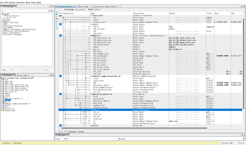 After the data is generated on the FPGA side of the first board, it is written to HPS DDR3 through mSGDMA, and then the HPS side reads the data in DDR3 and sends it to the second board through Ethernet. On the second board, I use the mmap function to write data into DDR3, and finally use mSGDMA to read data onto the FPGA side.