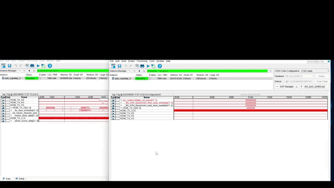 However, when I use signalTap to simulate and observe the receiving signal, the signal is always intermittent and not continuous. This is obviously unable to display the video. How can I modify my design to display the video normally on the receiving board. Video resolution is 1920x1080@8fps .