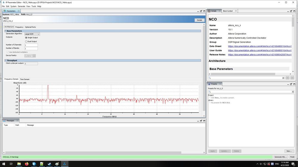 2. If there is no issue with the Modelsim simulation, you may proceed to hardware and then use signaltap to verify the NCO output.