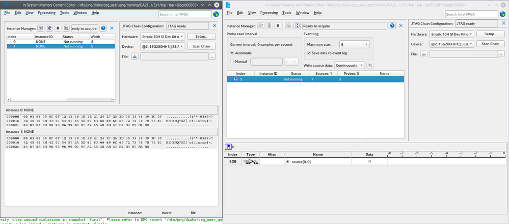 Once synthesized, I am able to program the Stratix 10 on the development board and connect to the ROM using the In-System Memory Content Editor.
