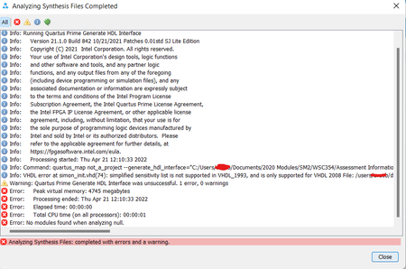 This error is fixed by changing the sensitivity of the process(all) to including signals. The sensitivity list in VHDL only supports "all" in VHDL 2008 which is not available in Quartus Prime Lite.