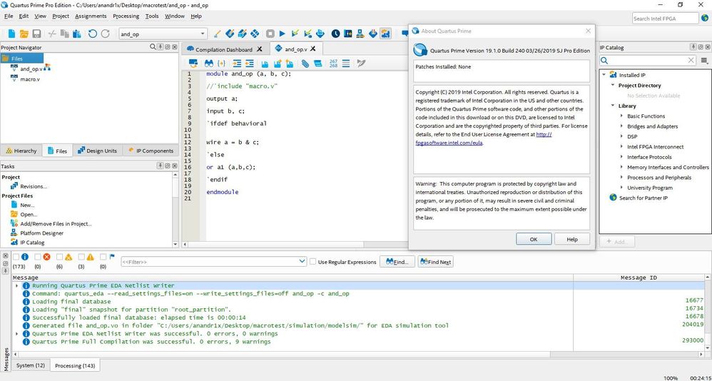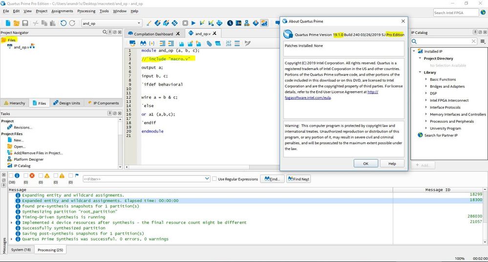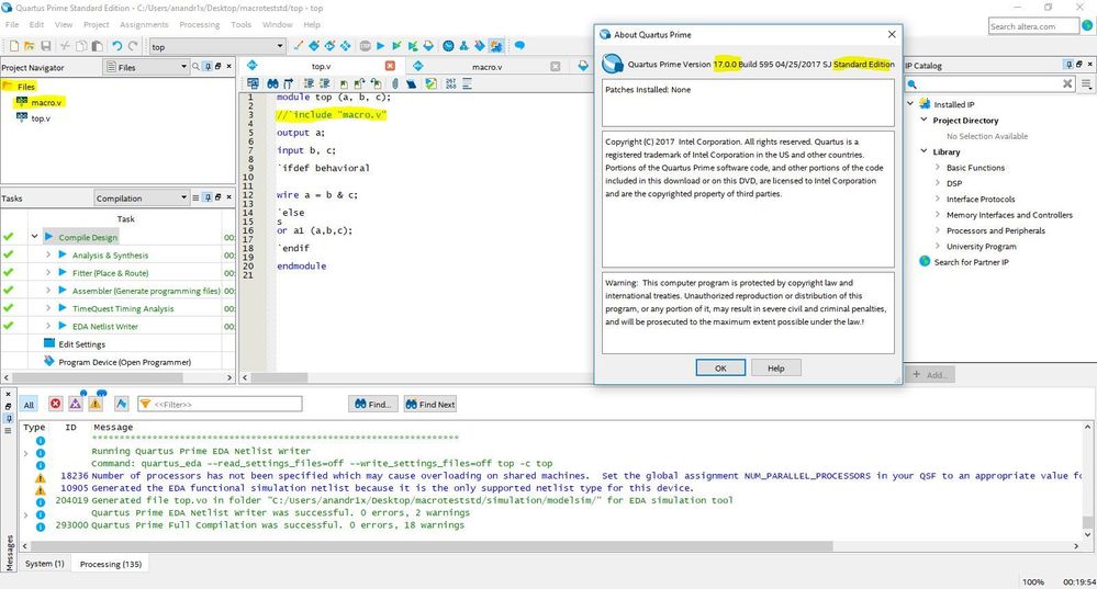- We need to add the include (macro)files to the project and just compile for Quartus STD & LITE.