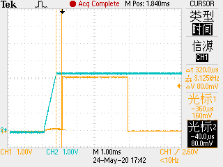黄色为IO上电时的波形