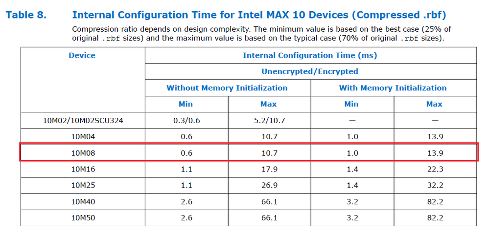 First you should know that I gather this timing informations from Intel's configuration user guide (https://www.intel.com/content/www/us/en/docs/programmable/683865/current/fpga-configuration-overview.html) and flash memory user guide (https://www.intel.com/content/www/us/en/docs/programmable/683180/18-0/user-flash-memory-overview.html). You should read them. Your cycle needs will change if your clock is different. After that: