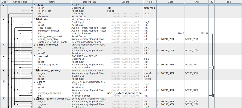 The project is setup like shown below. I would like to write to the external flash with the NIOS2 softcore.