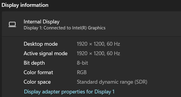 Grapics adapter is NVIDIA Quadro K610M (ZBook G2) respectively NVIDIA RTX 2000 (ZBook G10), with internal Display 1920 x 1080, 32 Bit/Pixel.