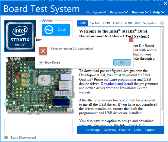 As suggested in the user guide, I tried to use board update portal (BUP) tool to restore factory default setting. Due to losing network connection, the system reported error. Then, I tried to use Quartus tool to load factory default bup.sof, it failed in programming. This is the dilemma i am in now.