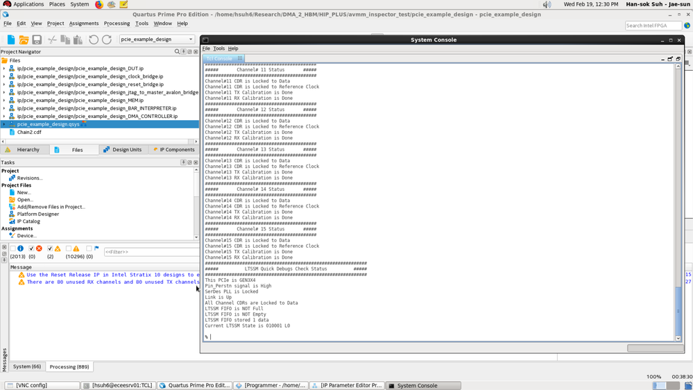We are trying to use Intel's DMA IP and PCIe Hard IP+ to communicate to the HBM memory. So far, we've tested AN881 design, AVMM PCIe Hard IP+ example design, and the PCIe golden design that comes with the board.