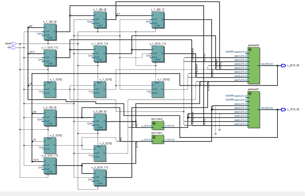 I don't know am I asking question at right place, I need help with optimizing my FPGA project in terms of freqs. I am trying to generate chaotic signal on FPGA board, chaotic oscillator described as IIR filter with nonlinear module (fig. 1), to realize that I used parallel add module from basic functions catalog. I found information about parallel add module only for Stratix devices (fig.2) On my Cyclone® V SE 5CSEMA4U23C6N device I get about 150 MHz FMax (fig. 3) and without non linear module about 200 MHz, am I doing something wrong or Cyclone V is slower than old Stratix devices? Can you give me advice how can I get higher FMax for this project?