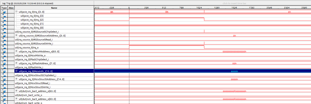 We expect that pcie_irq module's MSIX* interface would toggle when receiving interrupt, but it never works.