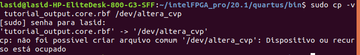 Could you try to restart your PC again and try to performed "cp <filename>.core.rbf /dev/altera_cvp"? I suspect that the PCIe link might be in used which cause the issue.