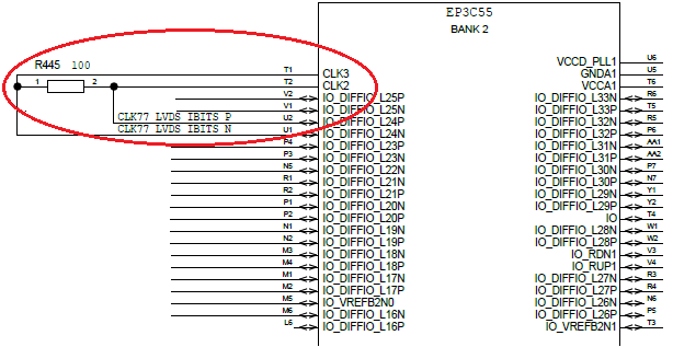 As per AN 479: Design Guidelines for Implementing LVDS Interfaces in Cyclone Series Devices