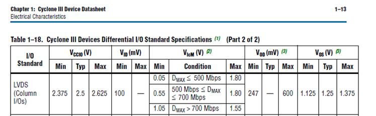 Query on Cyclone III FPGA LVDS IO and VCCIO