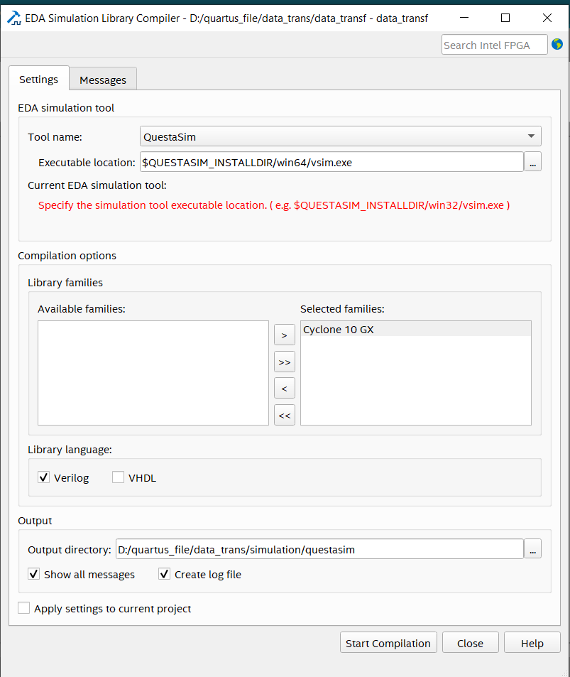 I have installed quartus prime pro and questasim starter edition. They both are working perfectly. How do i connect them. How do i through my design file to questasim. what will be the eda settings for sending design file from quartus prime to questasim.