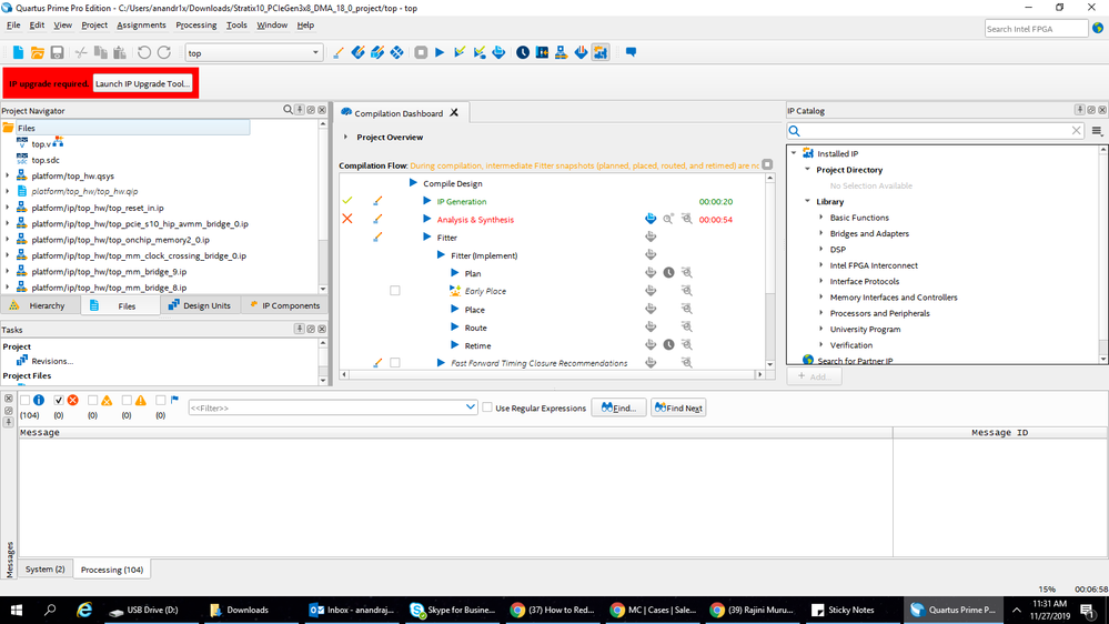 When I install the following reference design, Quartus shows "Installation failed" message and stops.