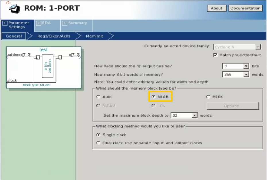Looking how to infer a small ROM into MLAB. When using the following code, the resulting altsyncram still reports RAM_BLOCK_TYPE set to AUTO instead of MLAB. I use the following code, tries romstyle on q and rom with same results, AUTO resulting into M10K being used. All assignments are default.