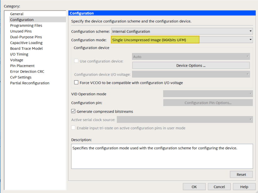 "current internal configuration mode does not support memory initialization or rom. select internal configuration mode with eram"