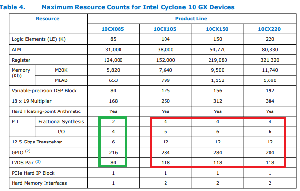 There is a gap in the Cyclone 10 GX overview between the 85 device and the rest in respect to the number of transceivers etc. so we hoped, that it might be a separate, optimized device (in the same way as Xilinx has just presented the ZU1 to address the lower ranges).