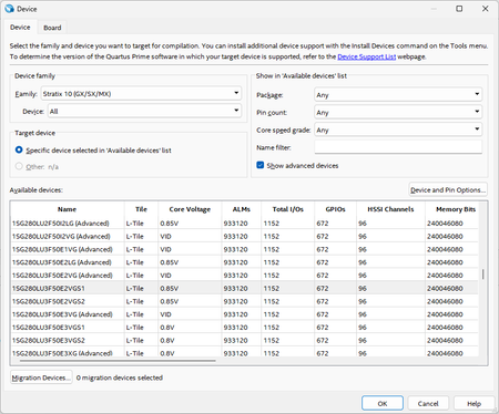 Yes. that's why I left this. Although I downloaded this example file from Intel design store with filtered "Stratix 10 Tx Dev Kit", the specified part numbers in Quartus Prime Pro didn't include any devices starting with TX.