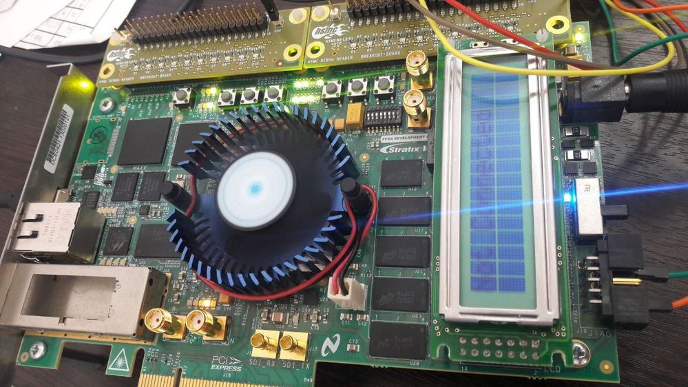 Also, we can't update flash memory through Nios II EDS according to the "Stratix V GX FPGA Development Kit User Guide": we can perform uploading file "factory_recovery\s5gxea7_fpga_bup.sof" by "Quartus II Programmer", but "nios2-flash-programmer" says "There are no Nios II processors available...". Moreover, this type of board has LCD and good board displays "Connecting" on it after configuring s5gxea7_fpga_bup.sof . But LCD stays dark in case of the buggy board.