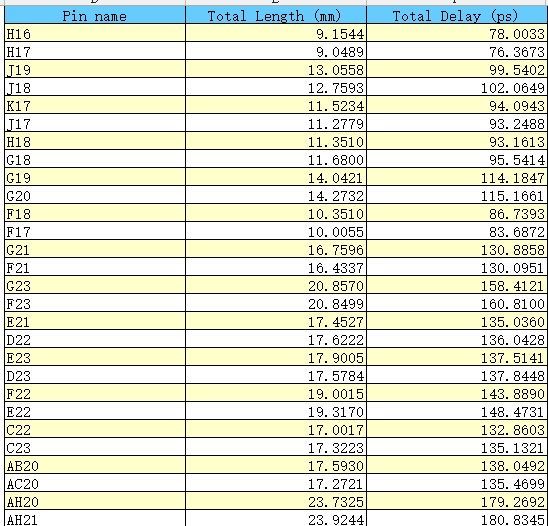 I downloaded this table(10AS032EF29_netlength.xlsx) from the official website, but there are two columns in it: Total Length (mm) and Total Delay (ps). Which data should I take as the criterion? What value should I set in the PIN DELAY of the PCB?