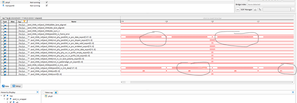 I configure ADC output toggle between 5555h and AAAAh, The PCS data looks correct, but one of the bits from the RX link data has appeared elsewhere. Why would this happen?