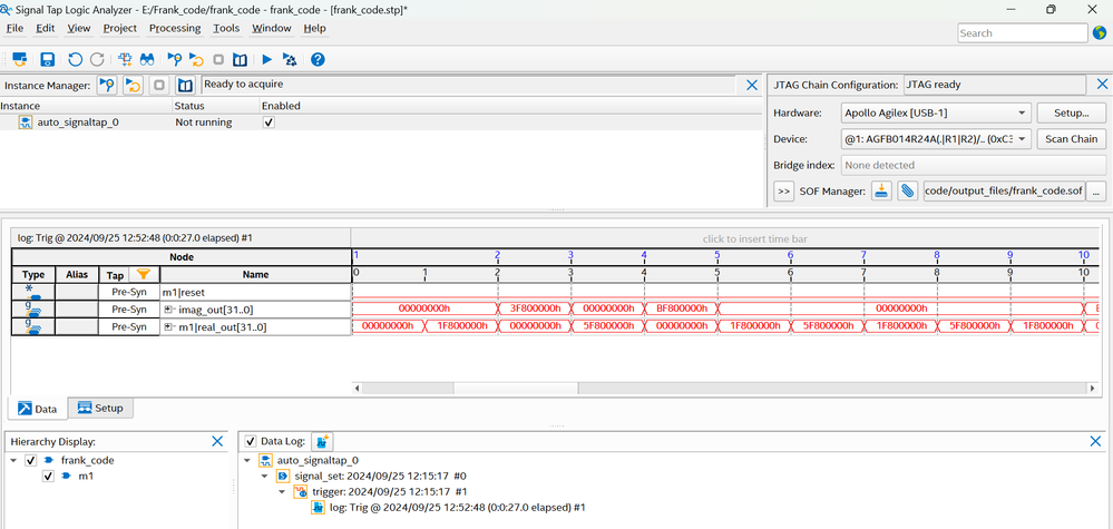 2. Below is the hardware-implemented output as seen in signal tap analyzer:
