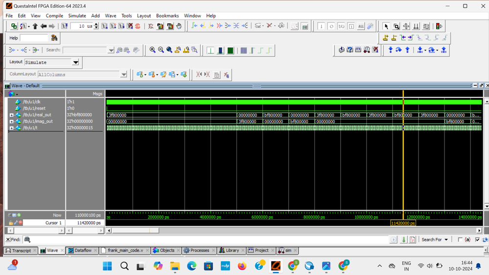Unable to generate output for 32bit real and imaginary data in hardware implementation for Agilex 7