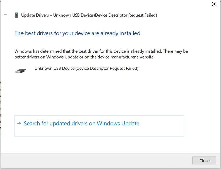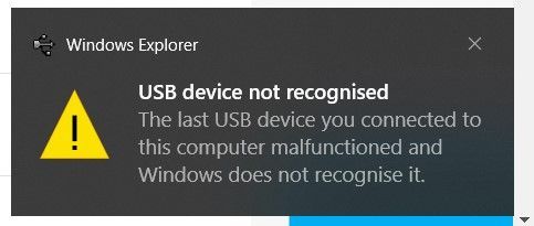 Basically now when I plug the USB cable and power up the board I get this error message: