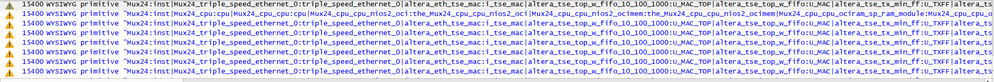 Warning (15400): WYSIWYG primitive "Mux24:inst|Mux24_cpu:cpu|Mux24_cpu_cpu:cpu|Mux24_cpu_cpu_nios2_oci:the_Mux24_cpu_cpu_nios2_oci|Mux24_cpu_cpu_nios2_ocimem:the_Mux24_cpu_cpu_nios2_ocimem|Mux24_cpu_cpu_ociram_sp_ram_module:Mux24_cpu_cpu_ociram_sp_ram|altsyncram:the_altsyncram|altsyncram_qid1:auto_generated|ram_block1a11" has a port clk0 that is stuck at GND