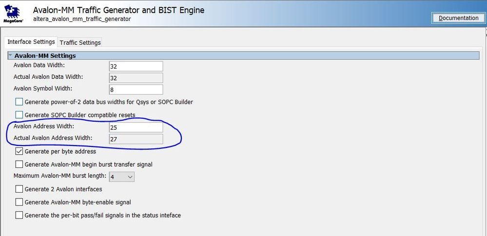 I have instantiated my DDR3SDRAM on HPS side and I want to connect it to a traffic generator. I found this avalon traffic generator ip but there is this option of actual Avalon address width option. What is this option about? My address bit is 32 bit.