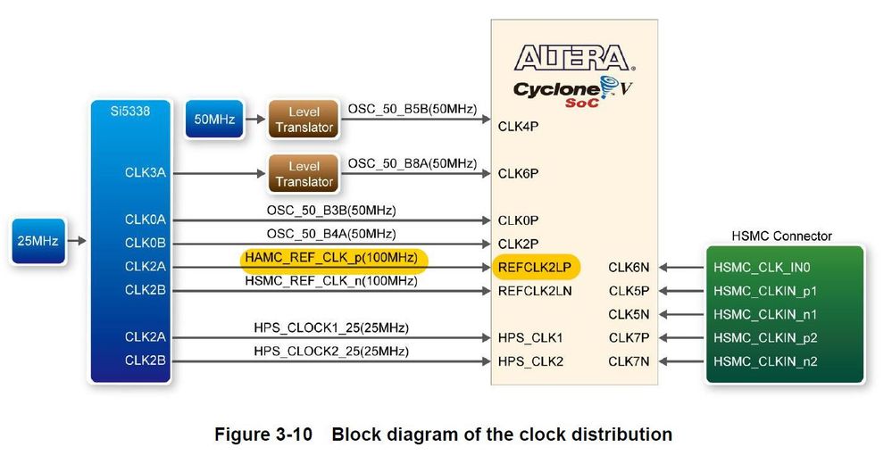 Hi, I am looking at this block diagram of clock distribution for cyclone V arrow sockit board. Does anyone know what is this HAMC_REF_CLK_p? I have never heard of HAMC? Any idea of what is HAMC?