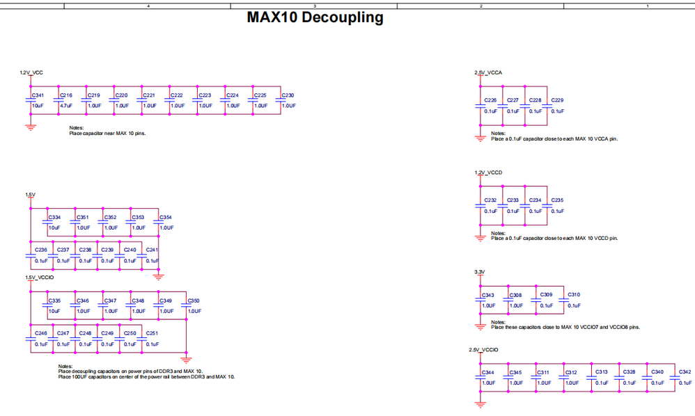 My design will not involve high-speed signals, only read and write UFM. So I want to know the exactly power supply decoupling capacitors solution for MAX10 10M50DAF256 or 10M40F256. Is there any reference design for 10M50DAF256 or 10M40F256?