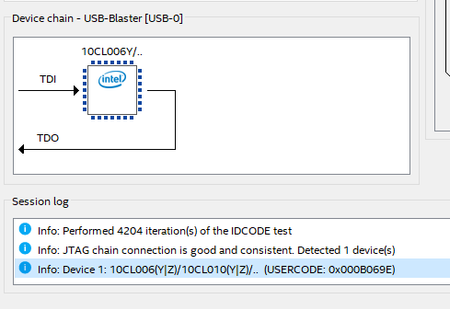 If you are using our development kit, can you change the USB Blaster to TCK 6MHz and all the switches to default position?