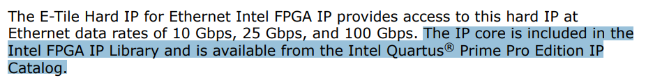 Ans: As per my understanding according your question, you want to implement the E-tile Hard IP on Stratix 10 devices. I would suggest you to use either Stratix 10 TX or Stratix 10 MX devices to implement the E-tile Hard IP on Stratix 10 board.