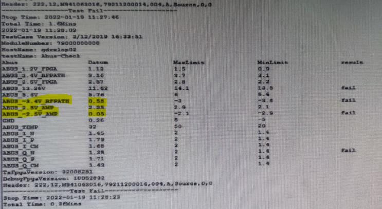 ABUS failure found no voltage at enable +12p5V_EN from FPGA expected 2.6V measured 0V |