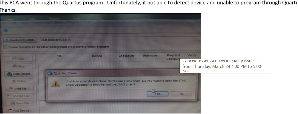 Encounter programmer fail during on JTag scan chain due to unable to detect the device.