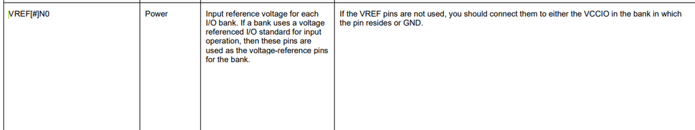 In Pin Connection Guidelines(PCG-01014-3.2), it is mentioned that "when VREF pins are not used, you should connect them to either the VCCIO in the bank in which the pin resides or GND."