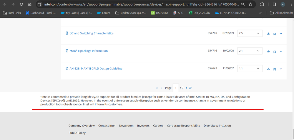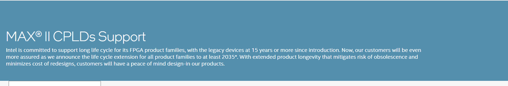 We are reviewing the parts we use in response to component obsolescence, and there was a statement that Intel has announced that it will extend the life cycles of its FPGAs and CPLDs until 2035.