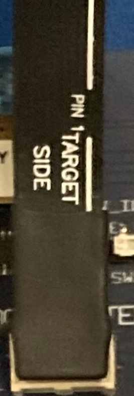 Here's a photo of the USB Blaster mated to our board. The shrouded connector just fits the USB Blaster connector. There's no room for the wider USB Blaster II connector: