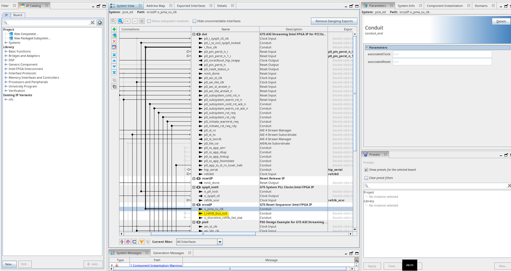 If you modify the GTS PCIe IP in Root Port in your project, I am pretty sure you will get the error.