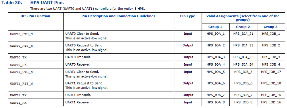 I would like to connect to UART0 of the HPS. The Pin Connection Guidelines shows the following possible pinouts: