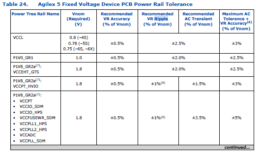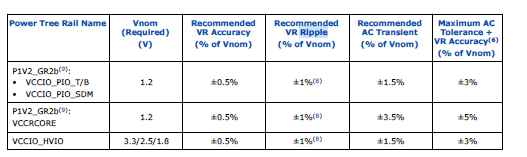- There is a requirement in the PCB Design Guideline User Guide for ‘Recommended VR Accuracy (% of Vnom)’ of ±0.5%.