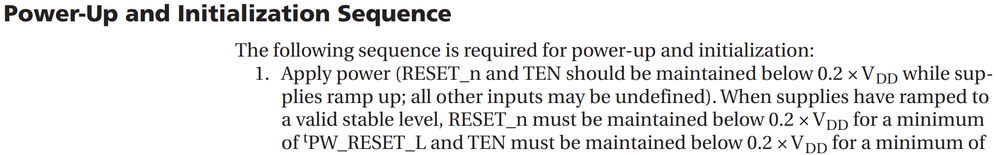 DDR4 memory vendor datasheet (thisis publicly available one for the MT40A2G8VA used on above linked eval board) states RESET must be low while power rails ramp up as pictured below which implies it should be instead pulled down to ground.